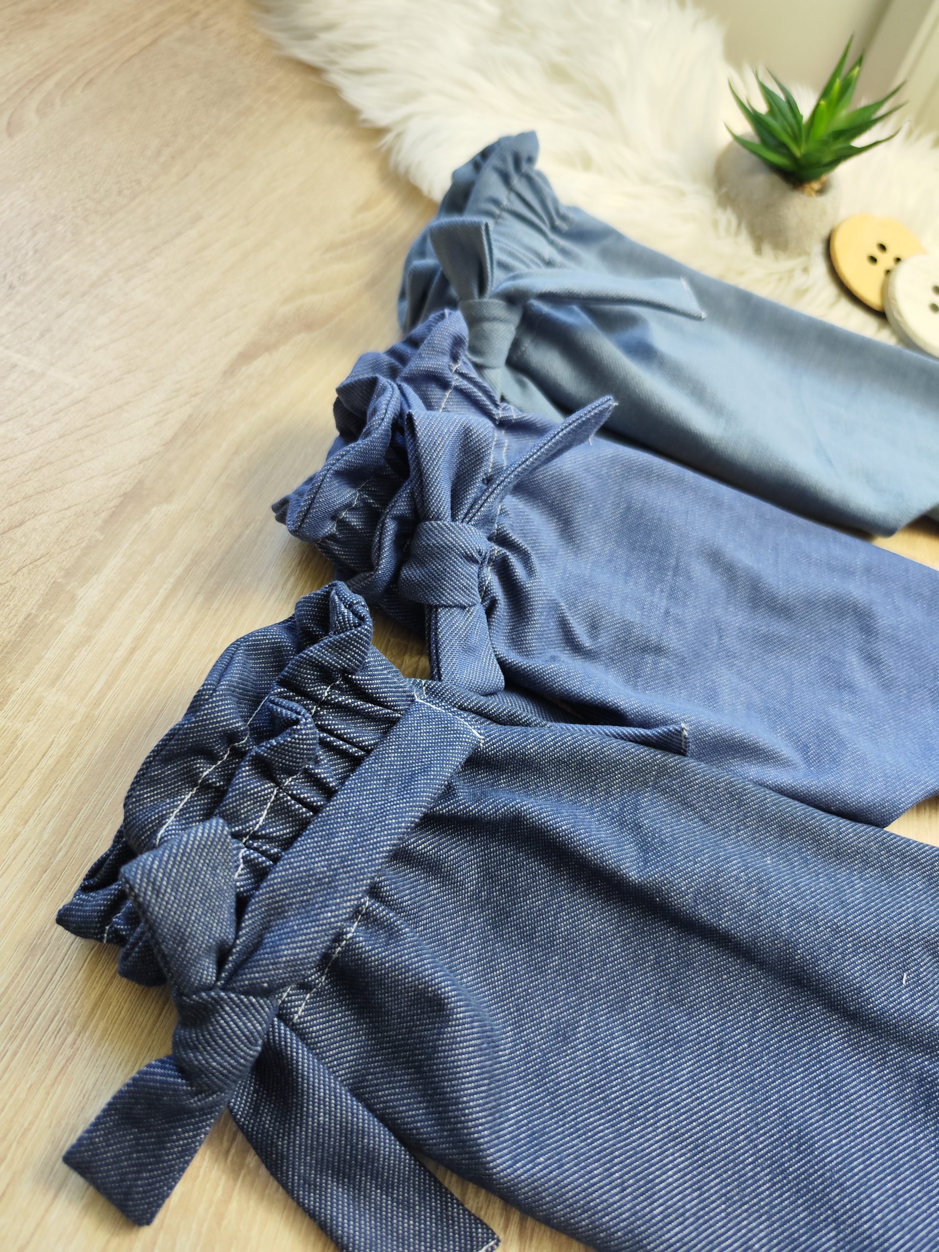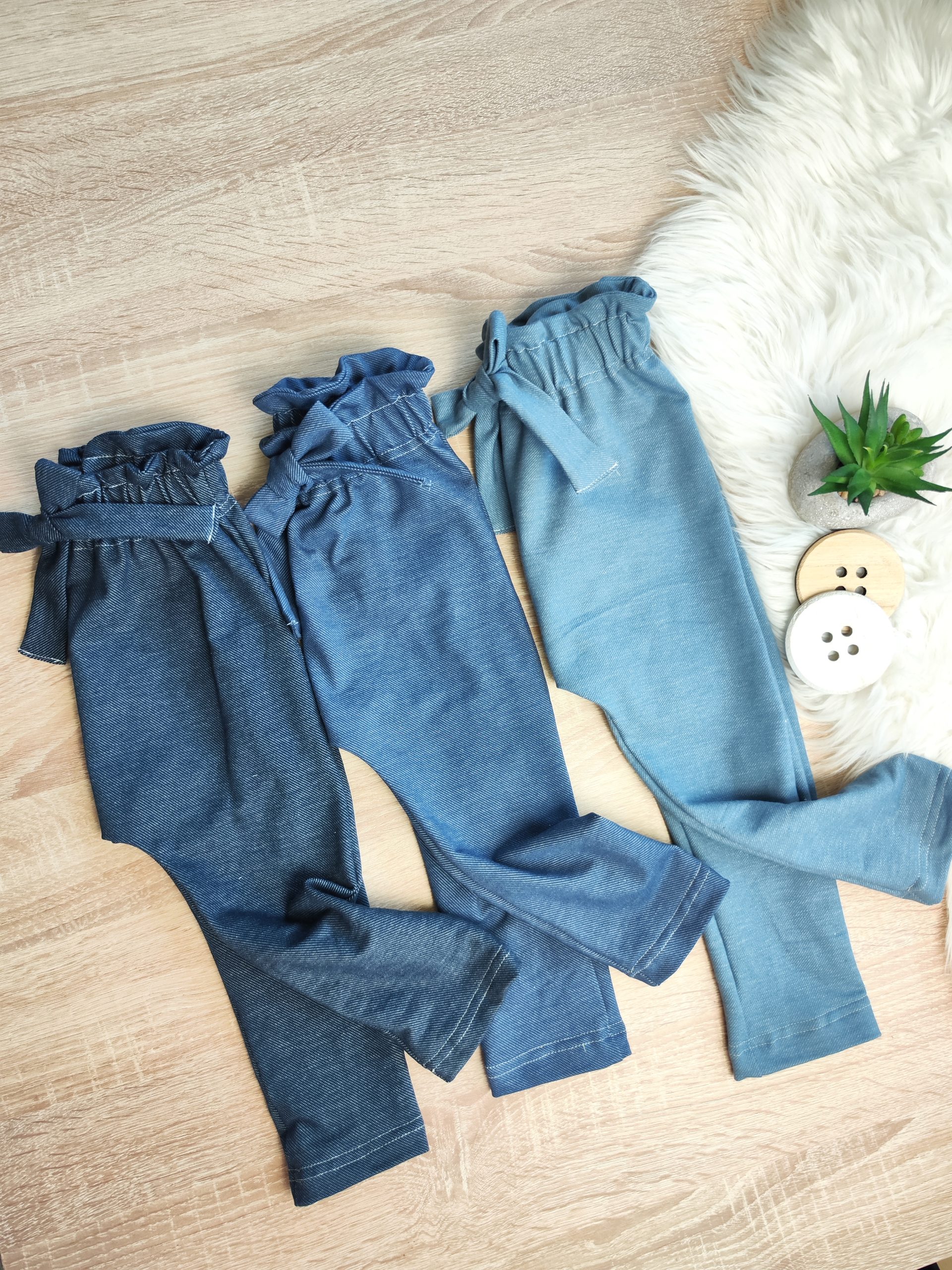 Paperbag baggy hlače za malčice v treh prelepih odtenkih imitacije jeansa! Naše hlače so izdelane iz visokokakovostnih materialov, ki zagotavljajo udobje in svobodo gibanja vaši malčici.